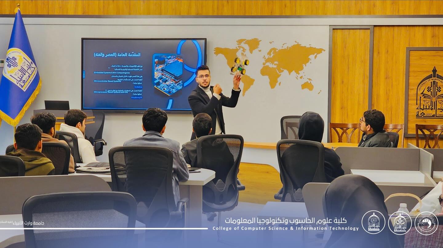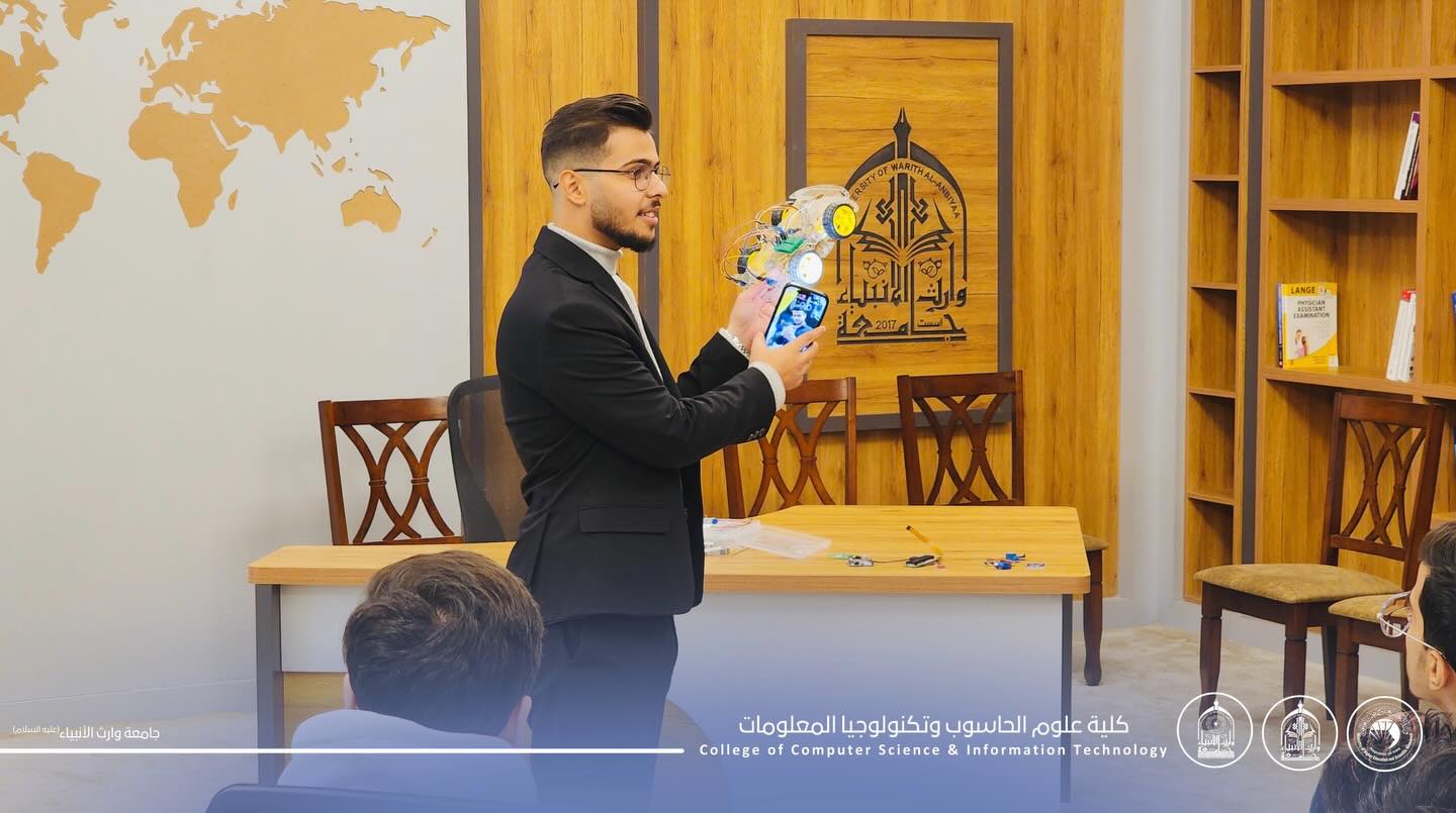 قدّم الورشة الطالب علي حيدر جبار، أحد طلبة قسم تكنولوجيا المعلومات / المرحلة الثانية، حيث تناولت أساسيات الأردوينو وآلية استخدامه في تنفيذ تطبيقات الذكاء الاصطناعي ومشاريع تكنولوجية متعدده.