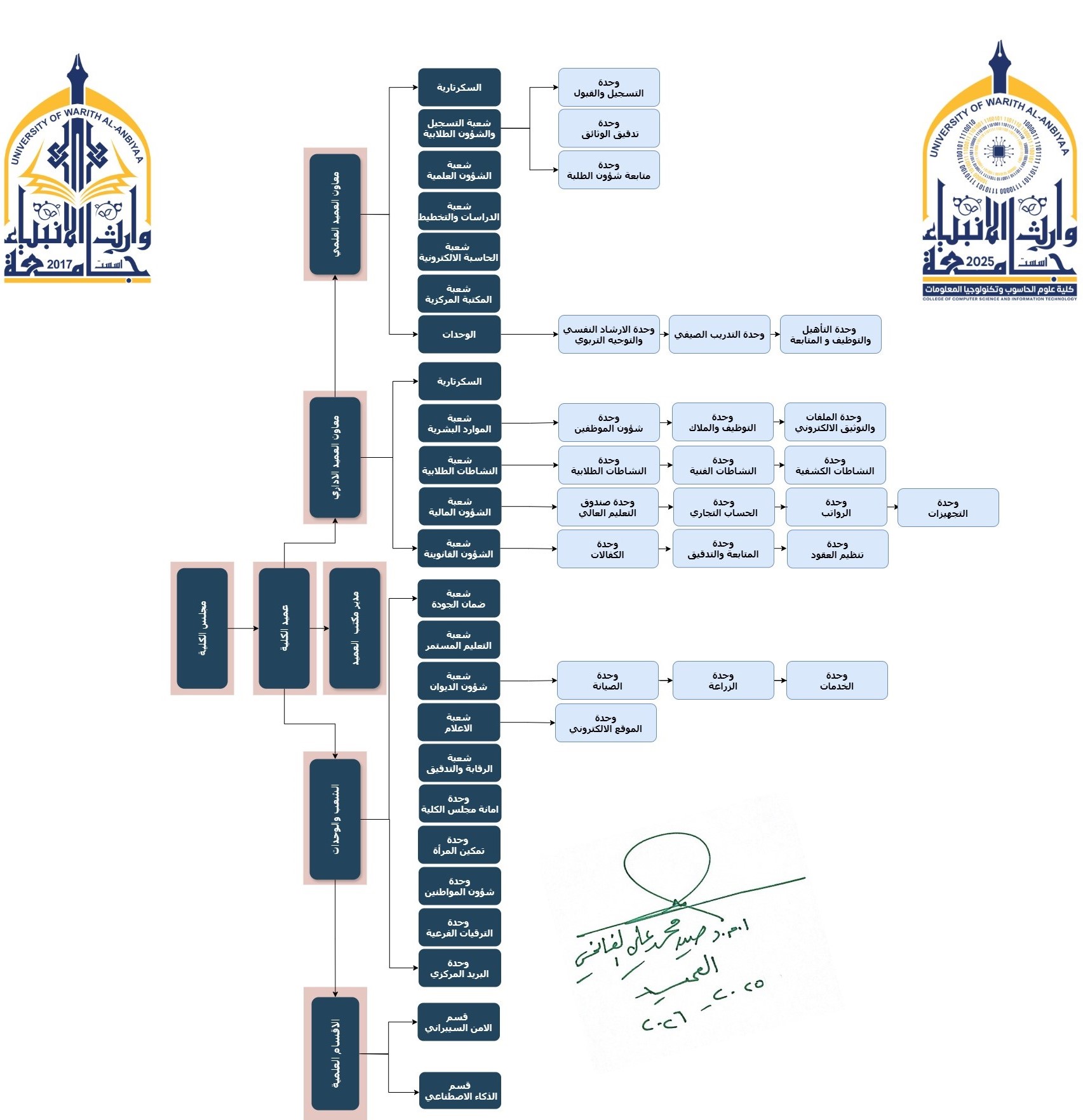 الهيكل التنظيمي لكلية علوم الحاسوب وتكنولوجيا المعلومات 2025-2026