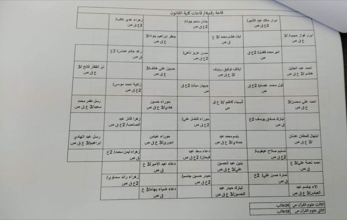 2021/04/01توزيع الطلبة على القاعات الدراسية استعداداً لاداء الامتحانات الحضورية النهائية للفصل الدراسي الاول لطلبة كلية العلوم الإسلامية