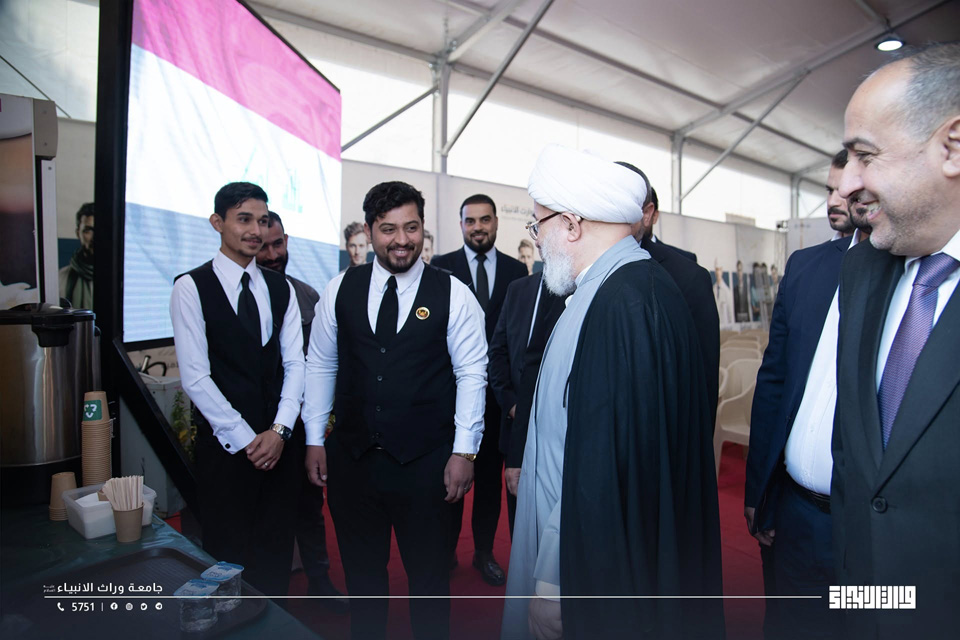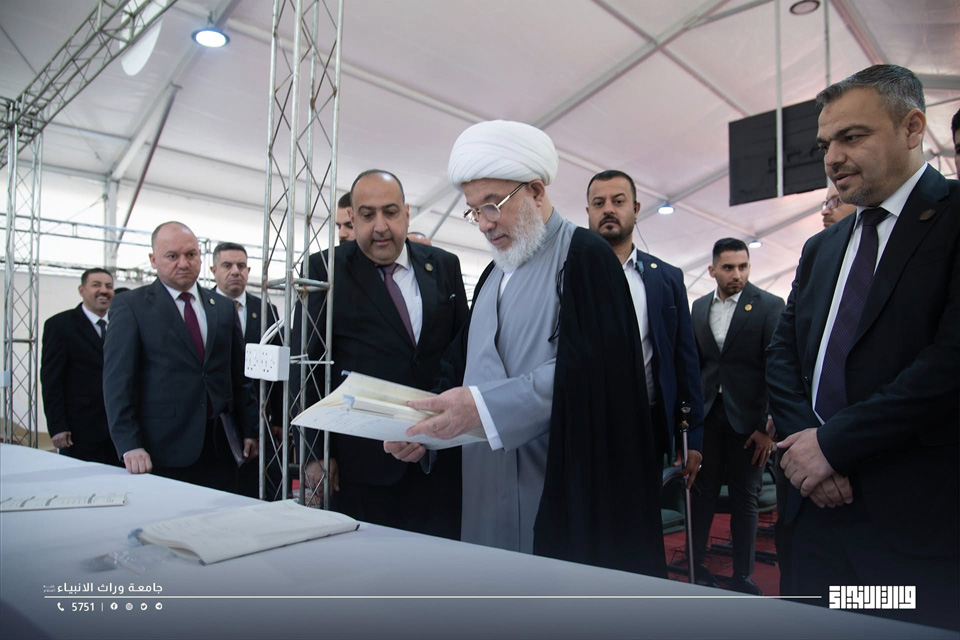 The Representative of the Supreme Religious Authority, Sheikh Abdul-Mahdi Al-Karbalai, visited the registration tent at the University of Warith Al-Anbiyaa, where he met with students’ families and reviewed the procedures for welcoming new students and the services provided to them.