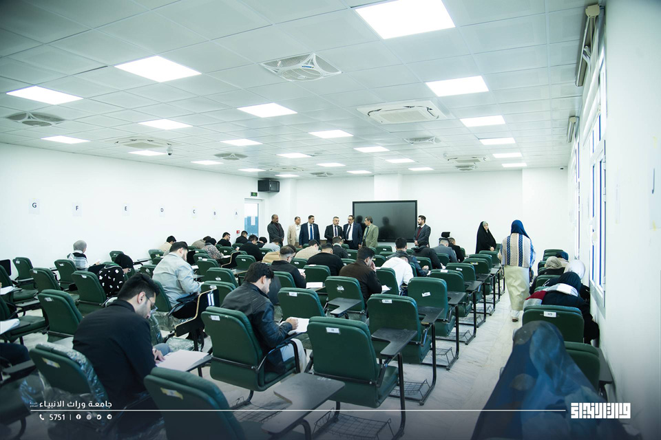 The Scientific Assistant to the President of Warith Al-Anbiyaa University, Professor Dr Waqed Al-Moussawi, conducted an inspection tour covering a number of examination halls across the University’s colleges and departments, in order to monitor the progress of final examinations and assess the level of compliance with the approved examination instructions and regulations.