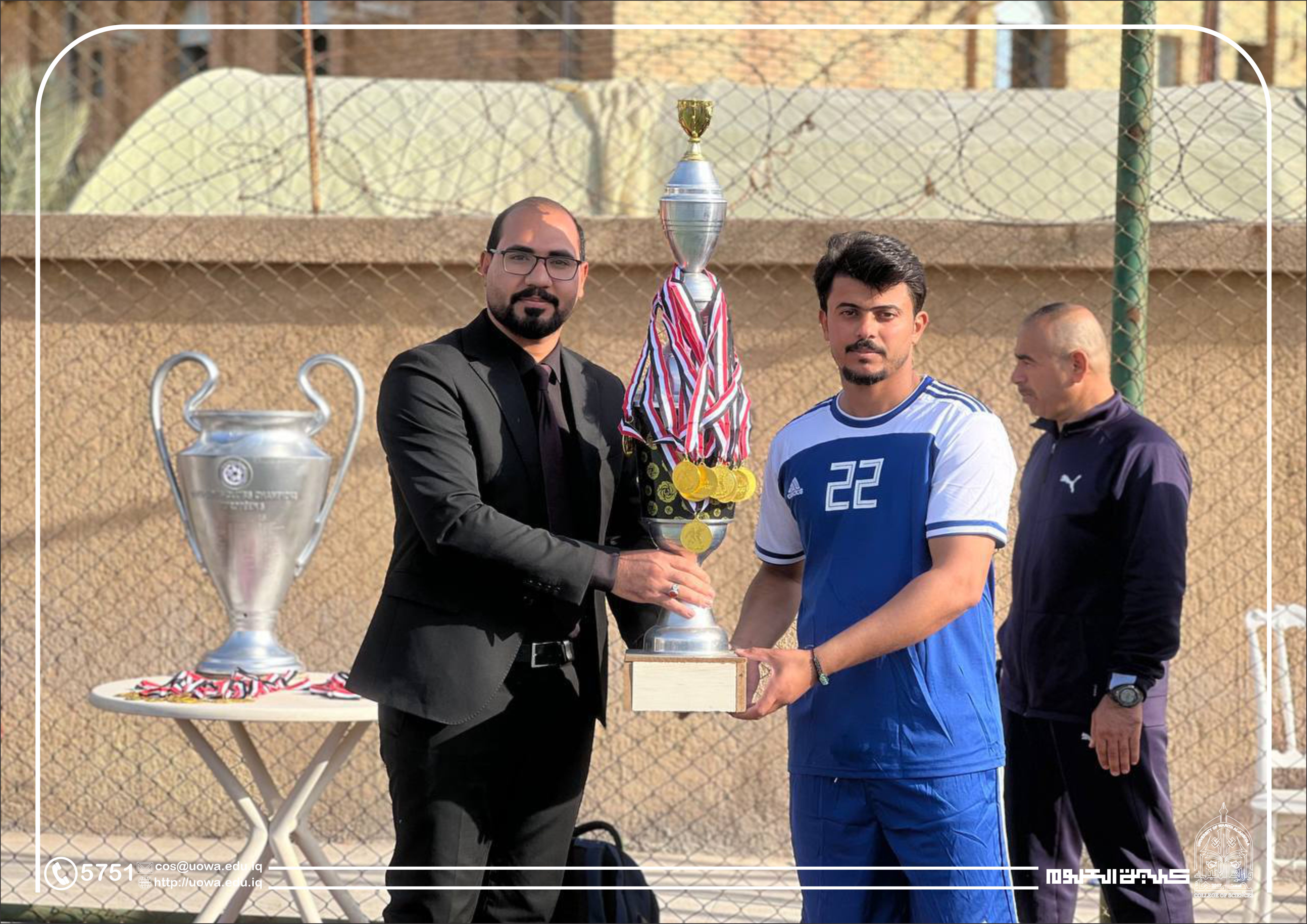 As part of the annual program of student and extracurricular activities, and under the patronage of the Dean of the College of Science (Dr. Shaimaa Hussein Nawfal), the college's Sports Activities Unit organized a friendly football match between a team of faculty members and a team of students.